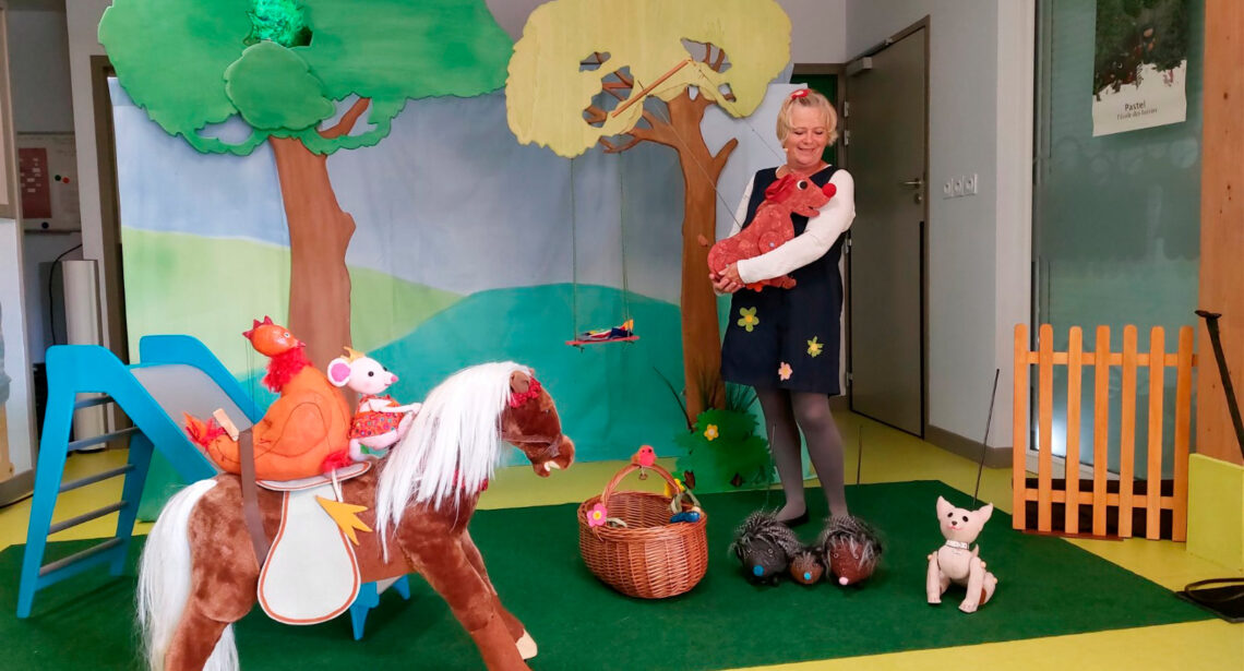 Agnès raconte et chante aux enfants une histoire toute simple, pleine de gaîté, de tendresse et de fantaisie. Ses marionnettes petites et grandes, en bois, en mousse, à fil, à tige et à roulettes s’amusent dans un décor champêtre et coloré.