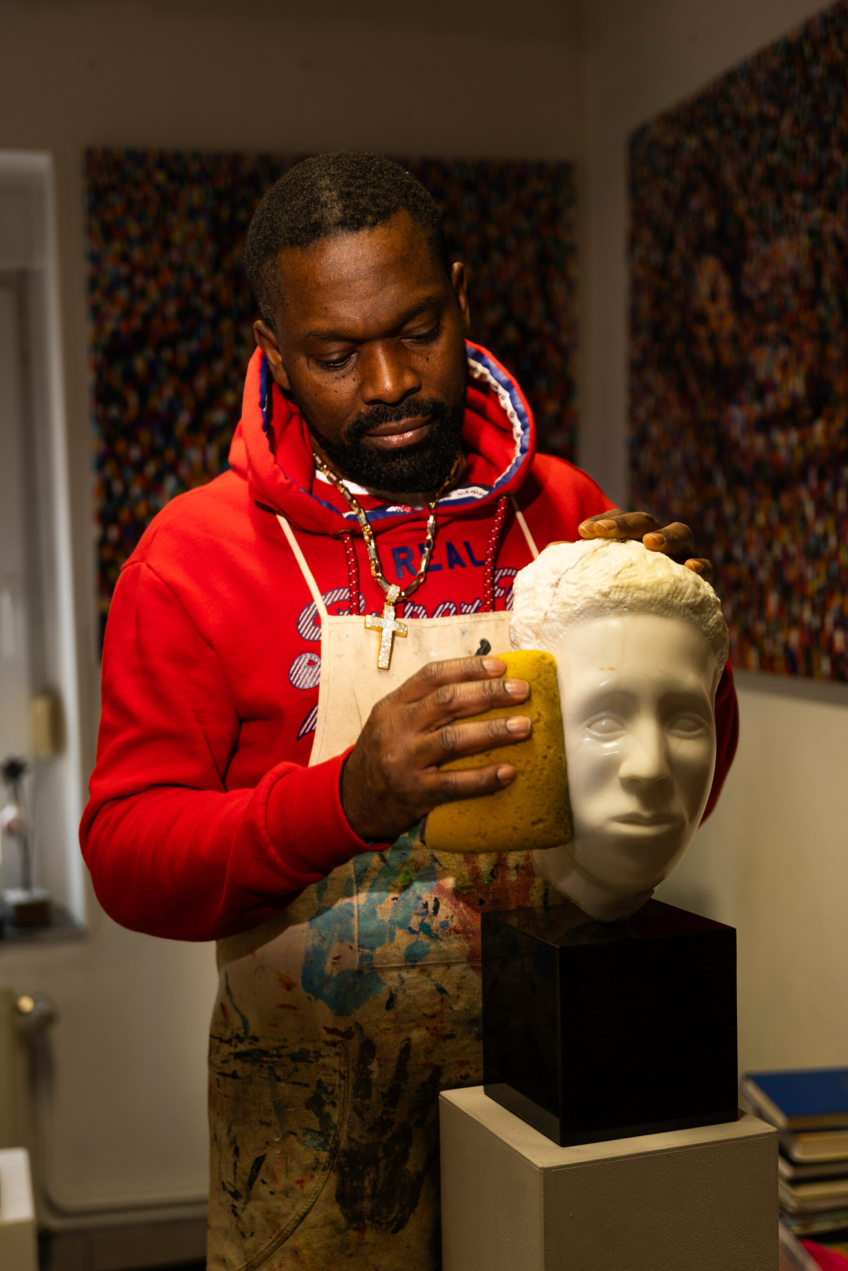 Son travail, à la frontière entre peinture et sculpture, explore des thèmes profonds comme la transformation, la connexion humaine et l’appartenance. Les œuvres d’Ogwara se caractérisent par des formes organiques riches en textures et des compositions qui suggèrent des masses humaines en harmonie, inspirées à la fois par des symboles africains et européens.